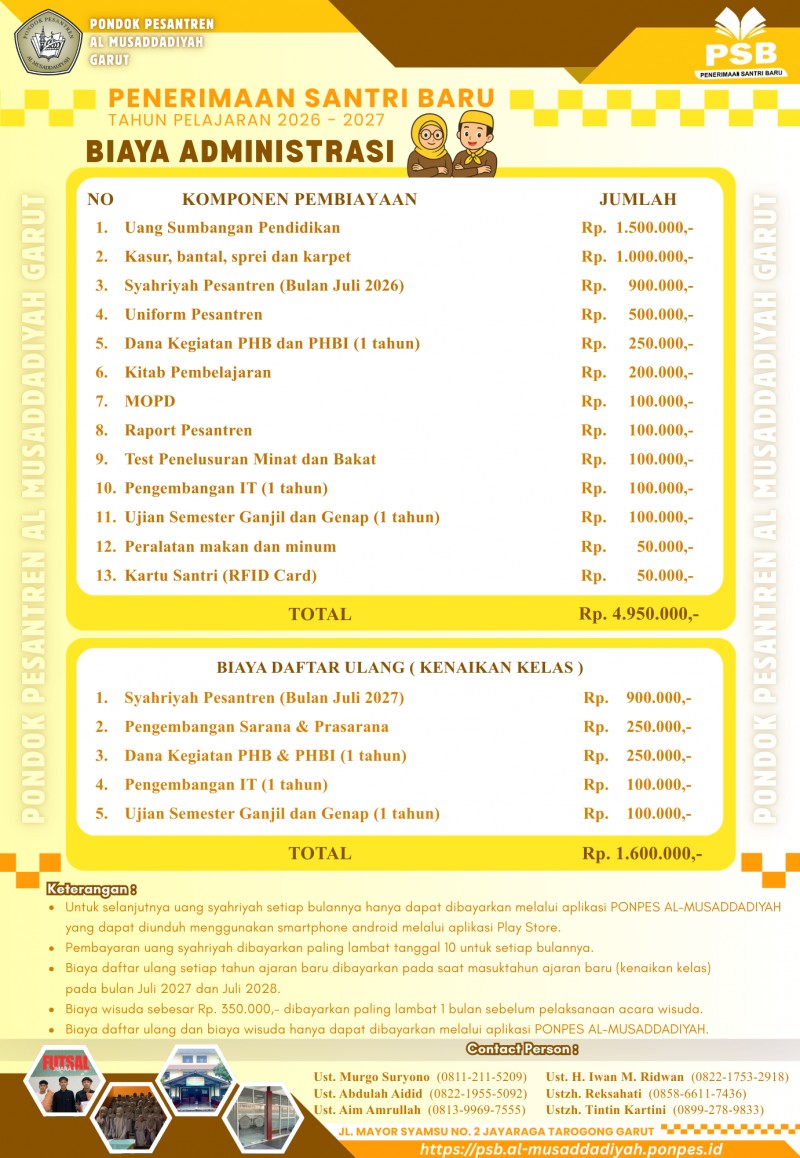 PENDAFTARAN SANTRI BARU TAHUN PELAJARAN 2026 - 2027 AKAN DIBUKA MULAI TANGGAL 1 FEBRUARI 2026.. SILAHKAN DAFTAR SECARA ONLINE ATAU DAFTAR LANGSUNG KE SEKRETARIAT PSB !..